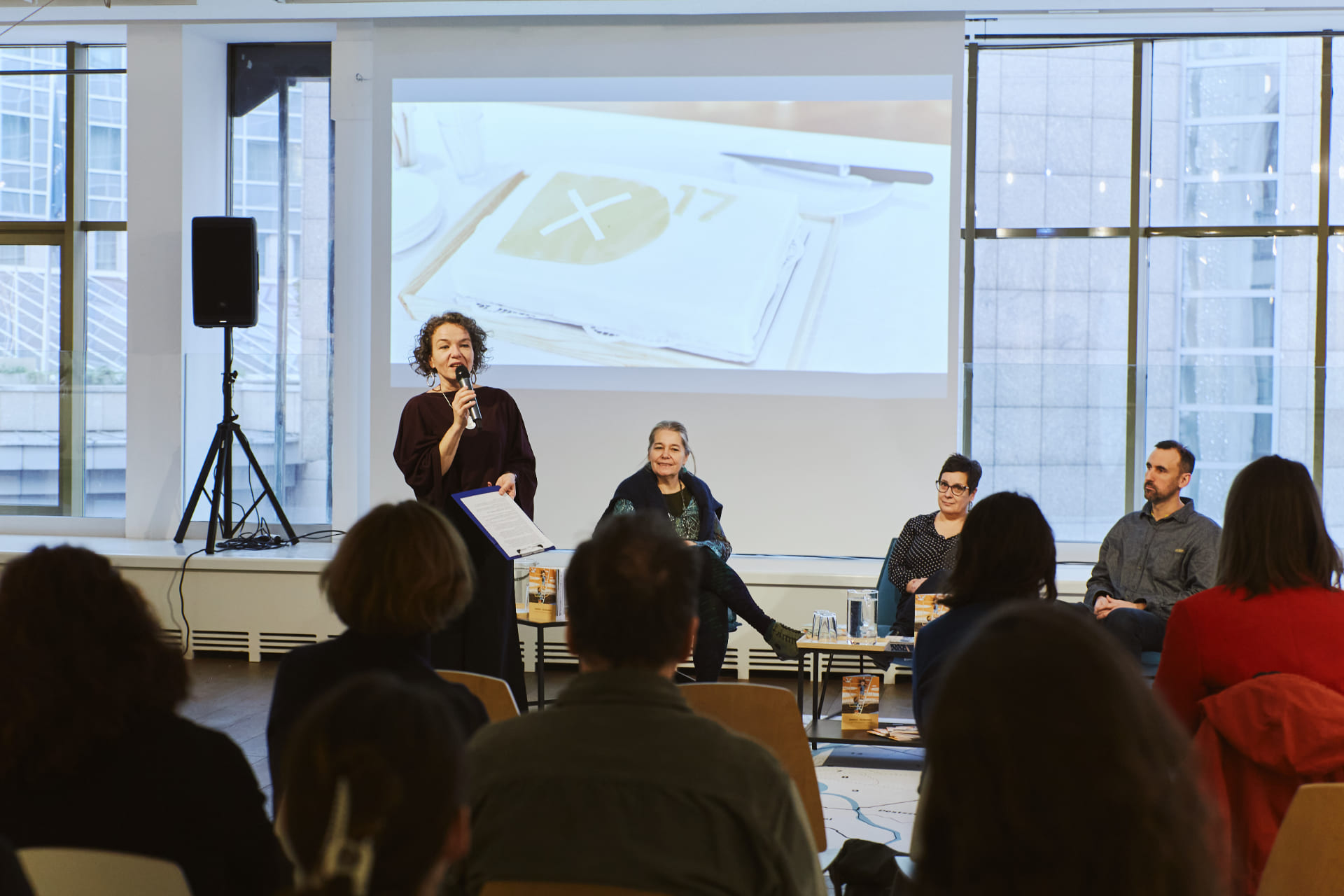 Résztvevők: Rozgonyi Sarolta, a Tiéd a Város kötetek szerzője (kultúrAktív Egyesület), Remsey Dávid illusztrátor. Moderátor: Révész Emese, művészettörténész